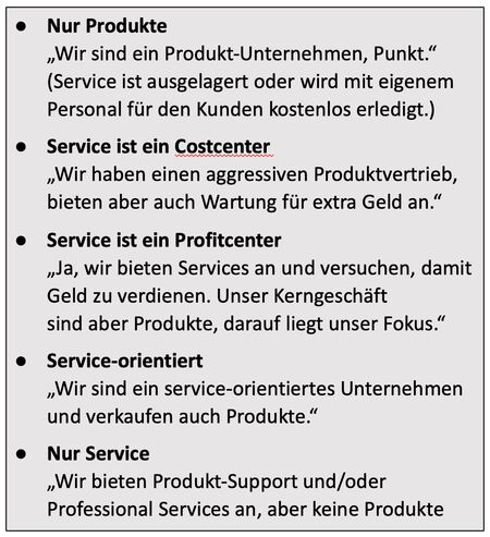 Als ich vor vielen Jahren Mitglied im AFSMI wurde, bekam ich dort zum ersten Mal eine Darstellung des „Services Continuum“ zu Gesicht – eine Achse mit den Phasen der Entwicklung von Unternehmen, die nur Produkte herstellen und anbieten bis hin zu reinen Service-Unternehmen. Das war lange vor der Zeit, als wir begannen, von Servitization zu sprechen, oder von Plattform-Ökonomie oder gar digitalen Geschäftsmodellen.