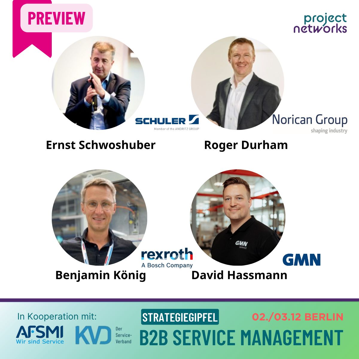 Der Strategiegipfel B2B Service Management bietet die ideale Plattform, um sich mit B2B-Unternehmen aus verschiedenen Branchen über diese und weitere Aspekte des Service Managements auszutauschen.