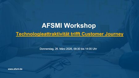 Prof. Dr. Christian Wissing und AFSMI-Vorstandsmitglied Sonja Kieffer-Radwan stellen im Rahmen des Workshops die Ergebnisse Ihres gemeinsamen Artikels vor, der 2026 in "Digital Service Innovation" 27. Band in der Reihe „Forum Dienstleistungsmanagement von M.Bruhn und K.Hadwich, erscheint.